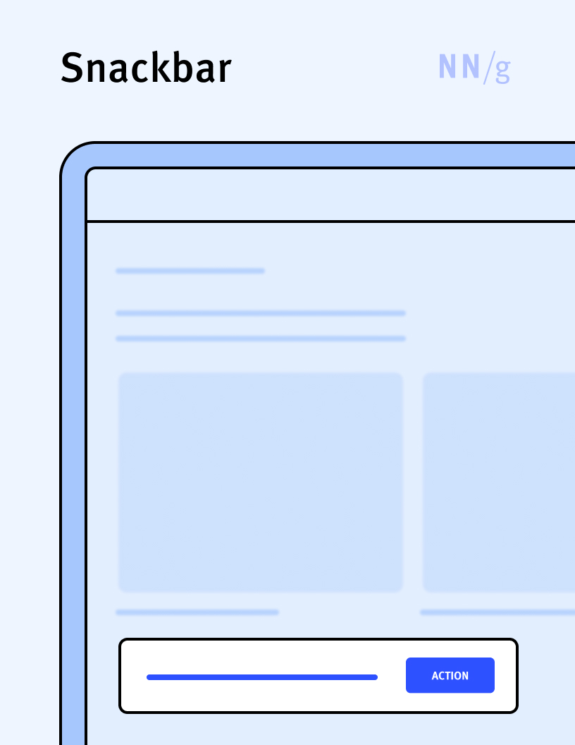 A transient nonmodal dialog that usually informs the user about the status of a process and that disappears automatically after a brief amount of time, without requiring user interaction. Often, snackbars are used to confirm the completion of a process (such as the deletion of a file). Some snackbars may include a button that allows the user to perform an action such as undo.
